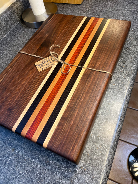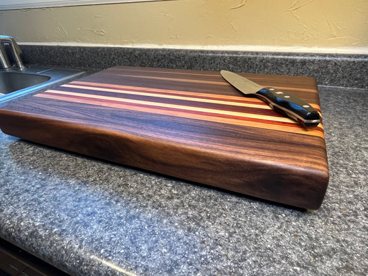 18"L X 13"W X 2"H Edge Grain Cutting Board-Walnut, with Cherry, Maple, Padauk accent strips