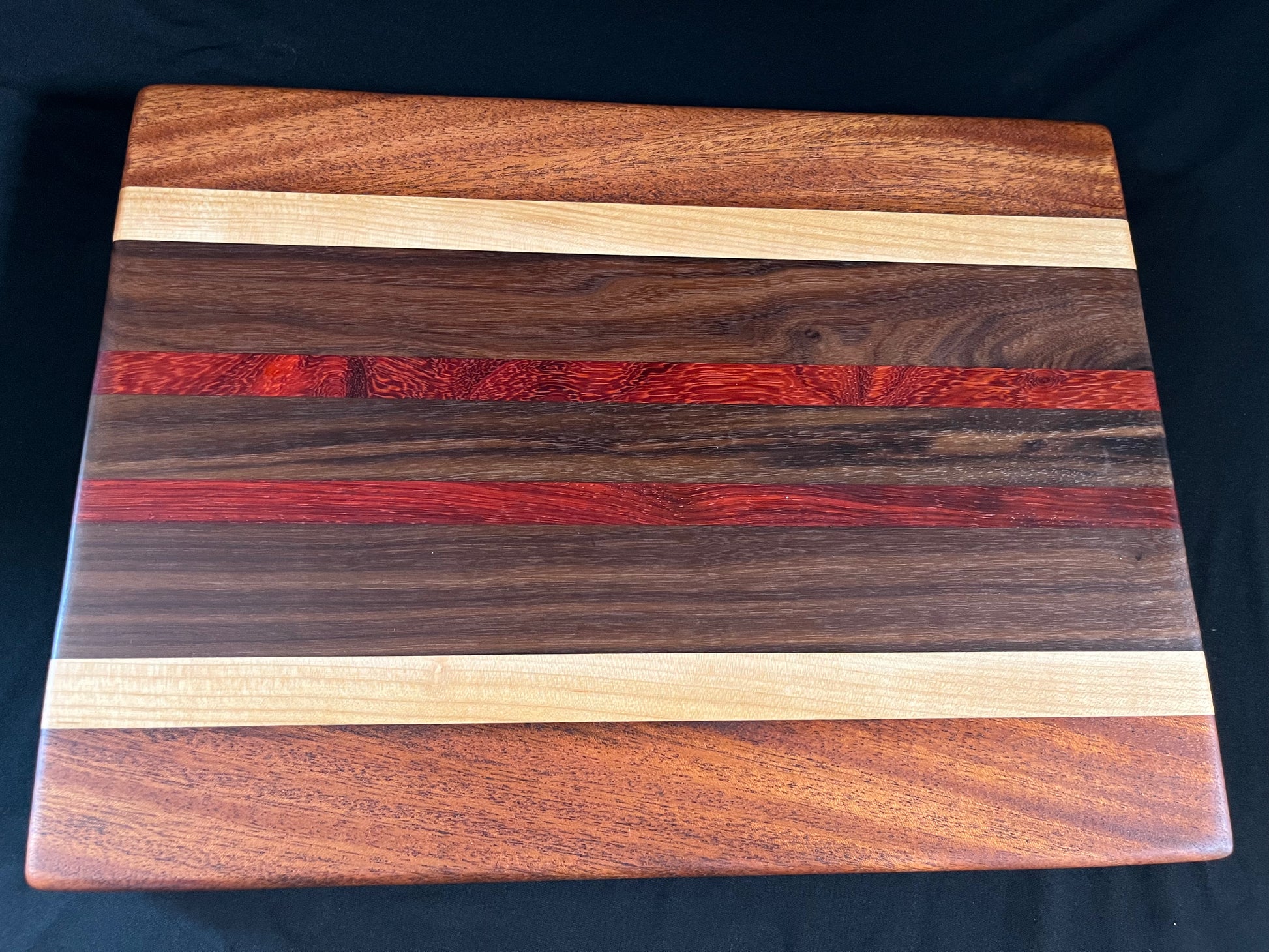 #1 15-1/4"X11-1/4"X1-3/8" Edge Grain Cutting Board-Walnut, Maple, Mahogany & Padauk w/rubber feet