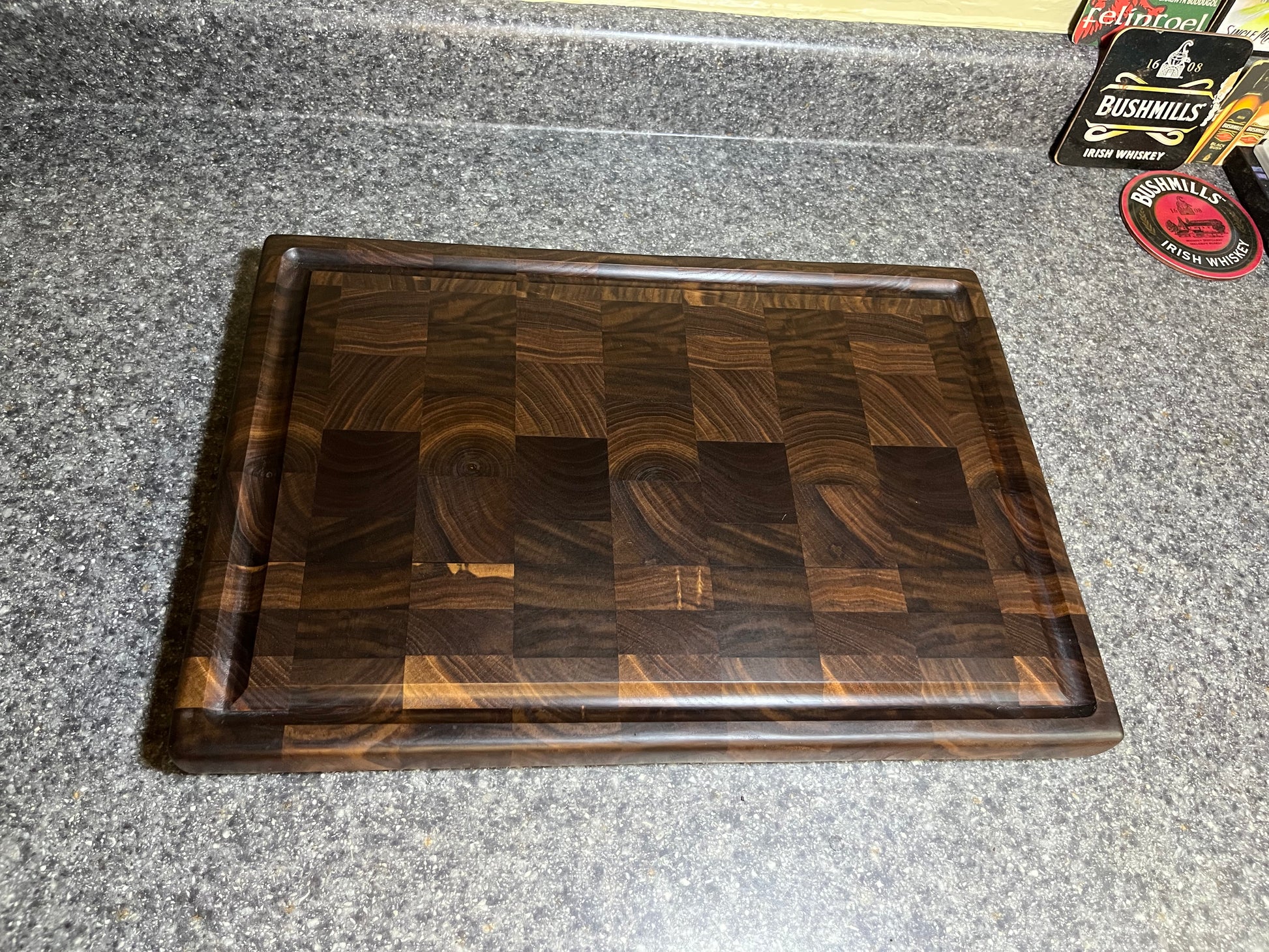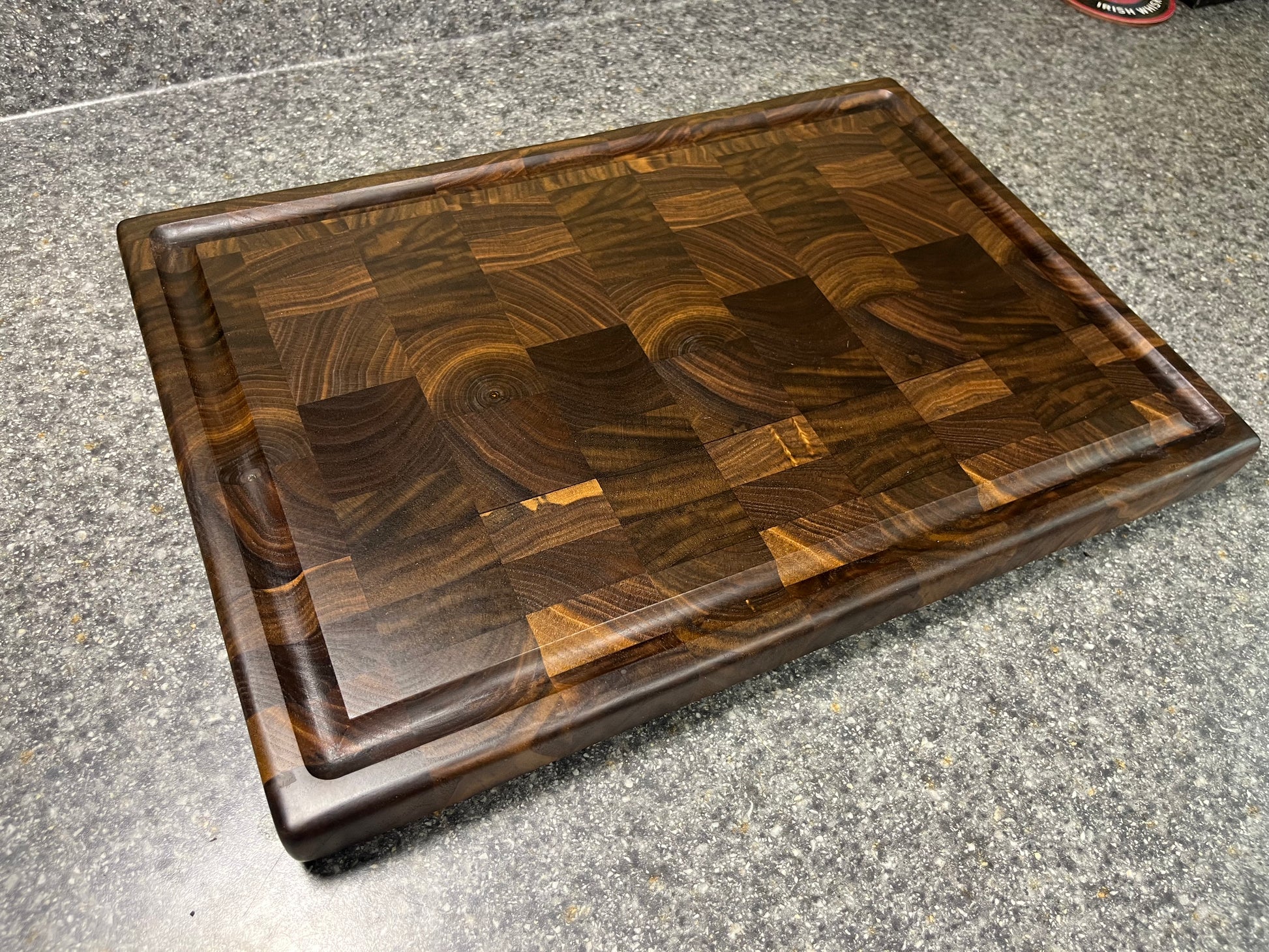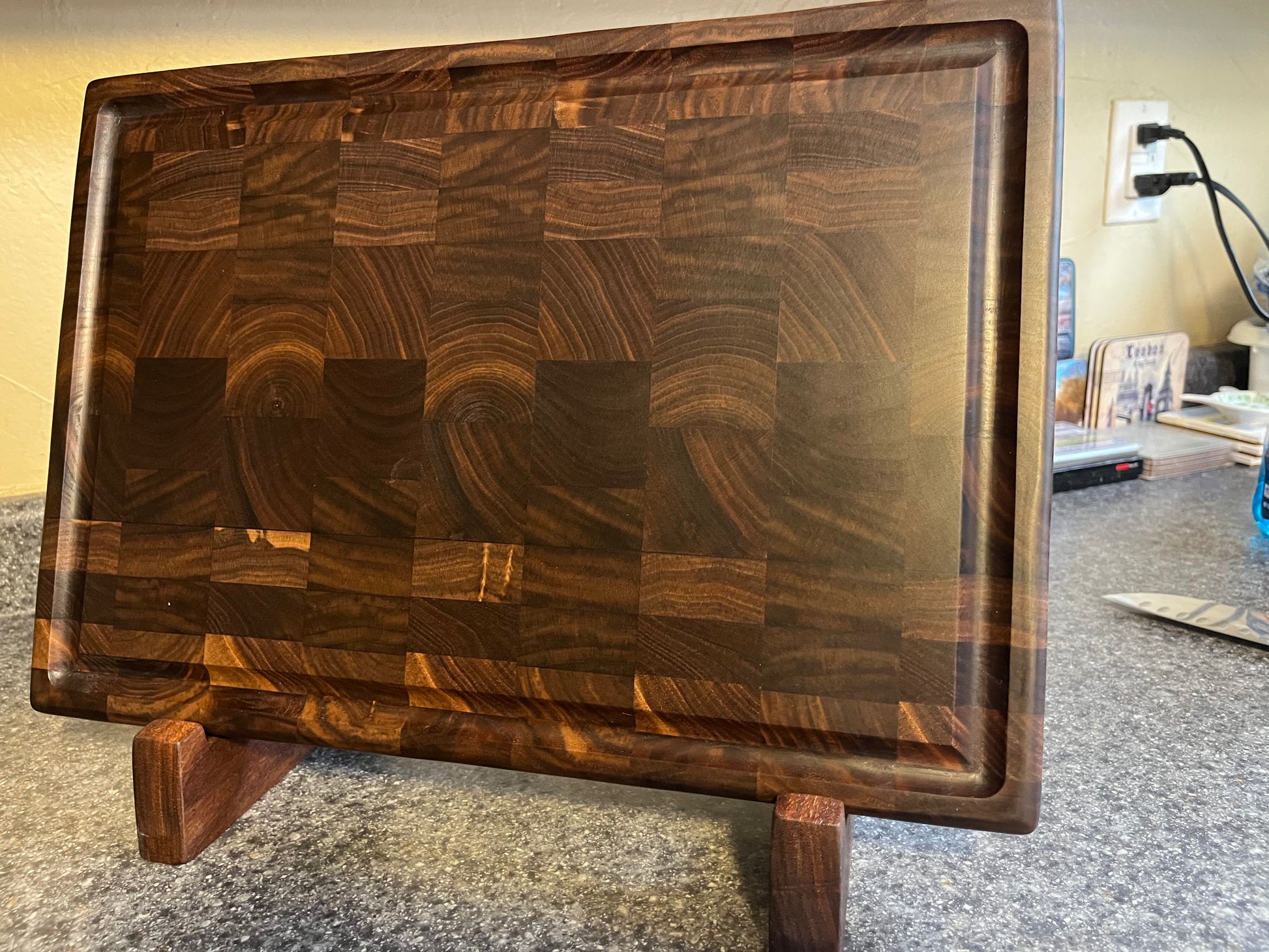 Walnut- End Grain Cutting Board w/juice groove– 16-¾" x 11-½" x 1-3/16"w/rubber feet
